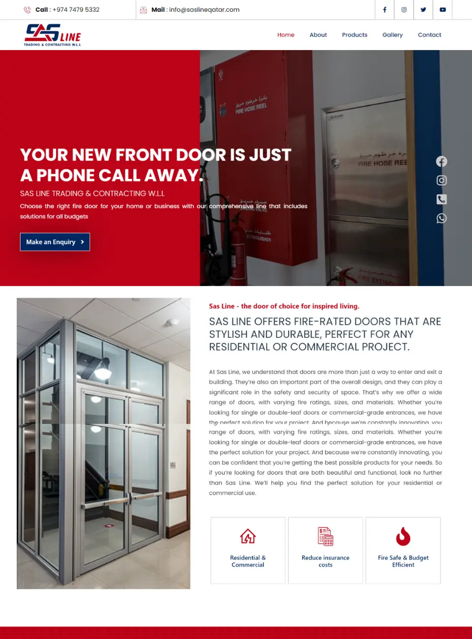 Sas Line offers a wide range of doors with varying fire-rated, sized materials and a comprehensive line of single and double-leaf doors, as well as commercial-grade entrances that include revolving doors and glass entrance systems